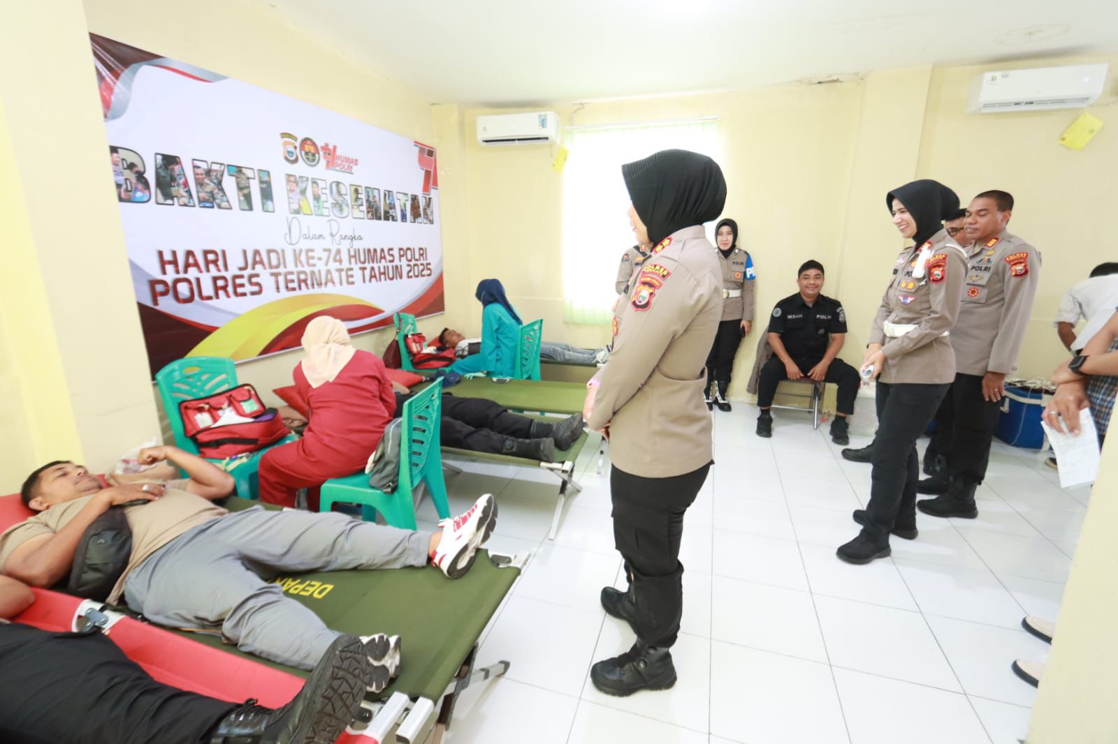 Kapolres Ternate, AKBP Anita Ratna Yulianto, menyampaikan bahwa kegiatan donor darah ini merupakan bagian dari rangkaian peringatan Hari Jadi Humas Polri yang mengusung semangat pengabdian dan kemanusiaan.