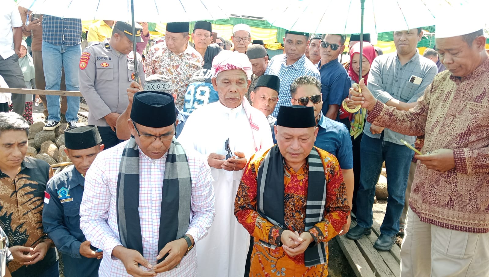 Ribuan warga dan jamaah berkumpul menyaksikan prosesi peletakan batu pertama Masjid Al Magfira, yang turut dihadiri langsung Wakil Bupati Halut, Kasman Hi Ahmad, bersama Wakil Gubernur Maluku Utara, Sarbin Sehe.
