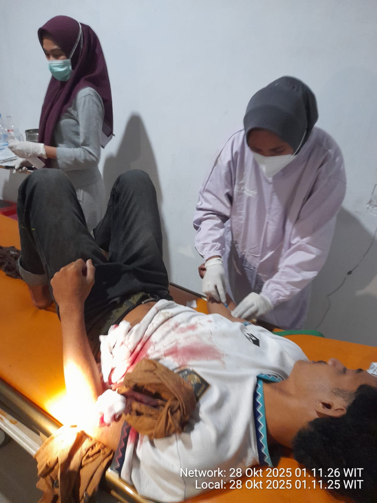 “Saya kaget lihat sepupu saya penuh darah. Kami langsung bawa dia ke rumah sakit sekitar pukul 01.39 WIT,” tutur Najwa.