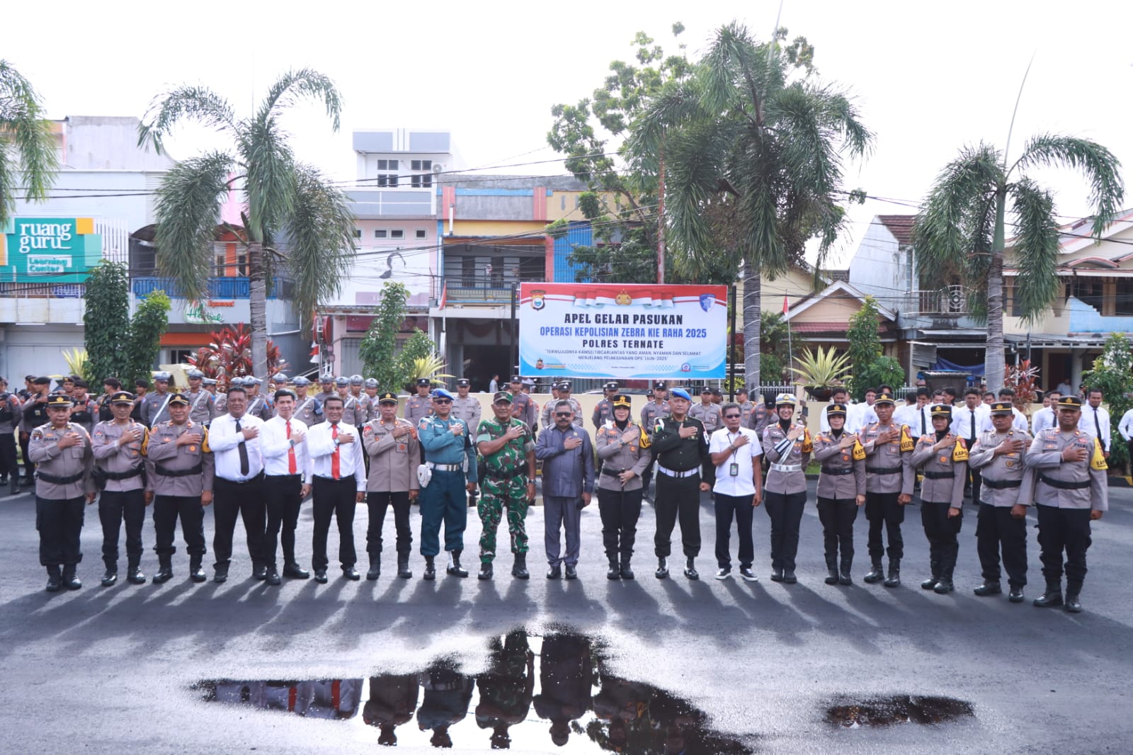 Apel diikuti oleh peleton gabungan perwira serta tiga kompi pasukan dari unsur TNI–Polri dan instansi terkait, termasuk Denpom XVI/1 Ternate, Kodim 1501 Ternate, Sat Samapta, Sat Lantas, Sat Intelkam, gabungan Sat Reskrim dan Sat Resnarkoba, serta personel Dinas Perhubungan dan Satpol PP Kota Ternate. Operasional didukung 5 unit kendaraan roda empat dan 5 unit kendaraan roda dua Sat Lantas Polres Ternate.