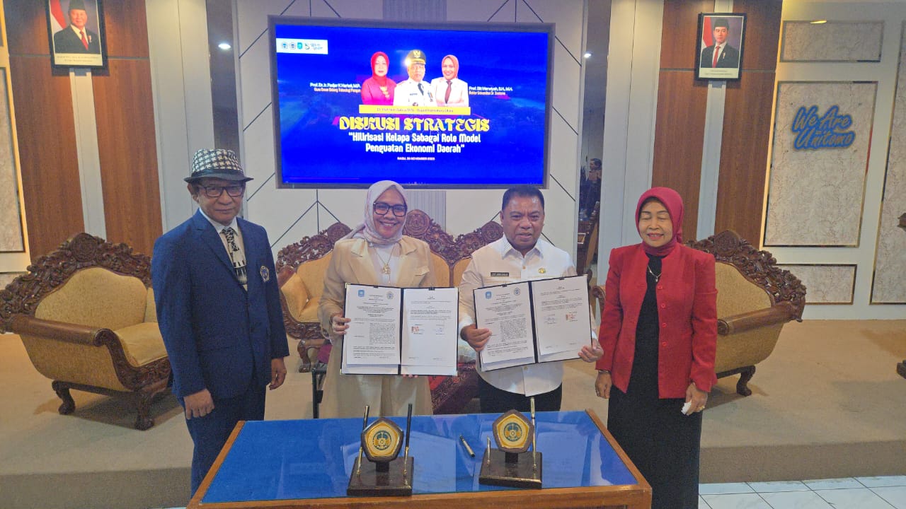 Bupati Piet Hein Babua menyampaikan apresiasi dan terima kasih kepada civitas akademika Universitas Dr. Soetomo yang telah memberikan ruang untuk berdiskusi mengenai hilirisasi kelapa dan membuka peluang kolaborasi lintas sektor.