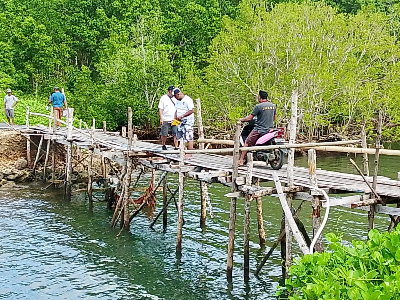 “Awalnya jembatan ini hanya berupa gorong-gorong kecil. Saat hujan deras, air meluap dan akhirnya jembatan jebol. Sudah banyak warga yang jatuh saat melintas, bahkan ada yang nyaris meninggal dunia karena terjatuh bersama muatan motor,” ungkap Abetnego.