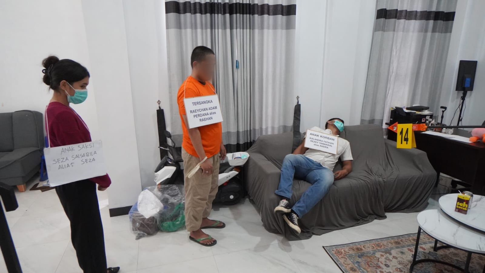 Rekonstruksi ini dilakukan untuk mengurai secara detail rangkaian peristiwa kekerasan yang dilaporkan korban berinisial PW terhadap tersangka RAP.
