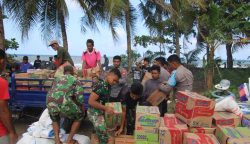 KRI Dorang-874 Tiba di Pantai Loloda Utara Bantuan Logistik untuk Korban Bencana