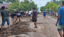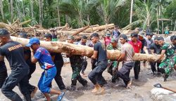Tak Kenal Cuaca, Tim Satgas Terus Bersihkan Lumpur di Desa Doitia